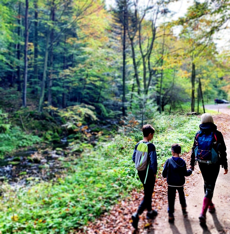 Wasza wędrówka w kierunku Wodospadu Magurskiego była nie tylko okazją do zdobycia odznaki, ale również prawdziwym odpoczynkiem na łonie natury. Piękno jesiennego lasu, promienie słoneczne prześwitujące przez korony drzew, i świeże powietrze dawały prawdziwe ukojenie od codziennego zgiełku. Widać było, że to dla was czas ładowania „akumulatorów” na nadchodzące dni, szczególnie, że każdy z chłopaków miał swój własny sposób na czerpanie radości z wędrówki – młodszy z nich, Leon, z całą pewnością znalazł w waszej obecności niesamowitą motywację do biegania i rozmawiania, podczas gdy Marcel, już wkraczający w młodzieńcze lata, podążał własną drogą.