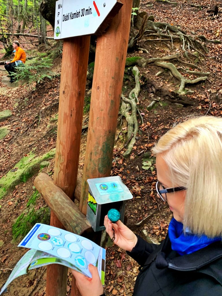 I przyszła… piękna, złota, trochę też już wyczekiwana jesień. A dlaczego wyczekiwana? Bo ostatnie dni chłodził nieprzyjemny deszcz, który sprawił, że na tę słoneczną pogodę czekaliśmy z utęsknieniem. Postanowiliśmy wrócić do Magurskiego Parku Narodowego, gdzie czeka na nas zdobycie odznaki terenowej. Dziś wybieramy dwie trasy, które pozwolą nam przybić pieczątki: Diabli Kamień i Wodospad Magurski.