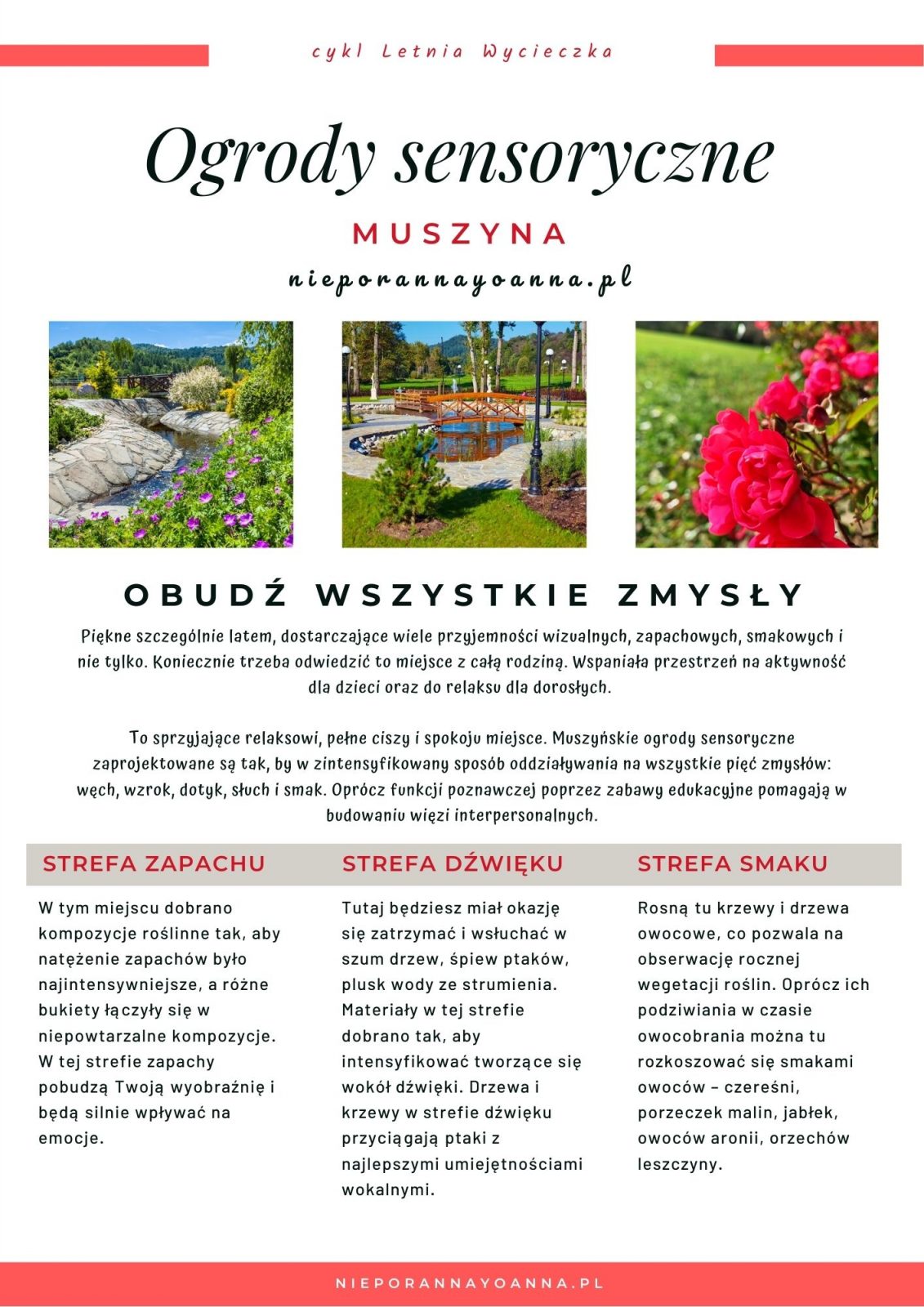 Muszyna i jej Ogrody Sensoryczne to miejsce, które warto odwiedzić niezależnie od pory roku. Spacerując między kwitnącymi roślinami, słuchając śpiewu ptaków i poznając lokalne legendy, można naprawdę poczuć harmonię z naturą i na chwilę oderwać się od codzienności.