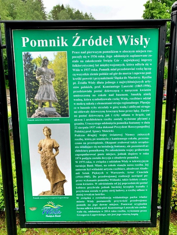 W trakcie spaceru natrafiliśmy na kilka interesujących pomników. Szczególną uwagę zwrócił ten, który upamiętnia osoby walczące o polskość i wolność ojczyzny. Obok niego znajdował się również pomnik Źródeł Wisły, który jest symbolem początków najdłuższej rzeki w Polsce. To miejsce ma ogromne znaczenie historyczne i kulturowe, a pomnik przypomina o tym, jak ważna jest Wisła w polskiej tradycji.